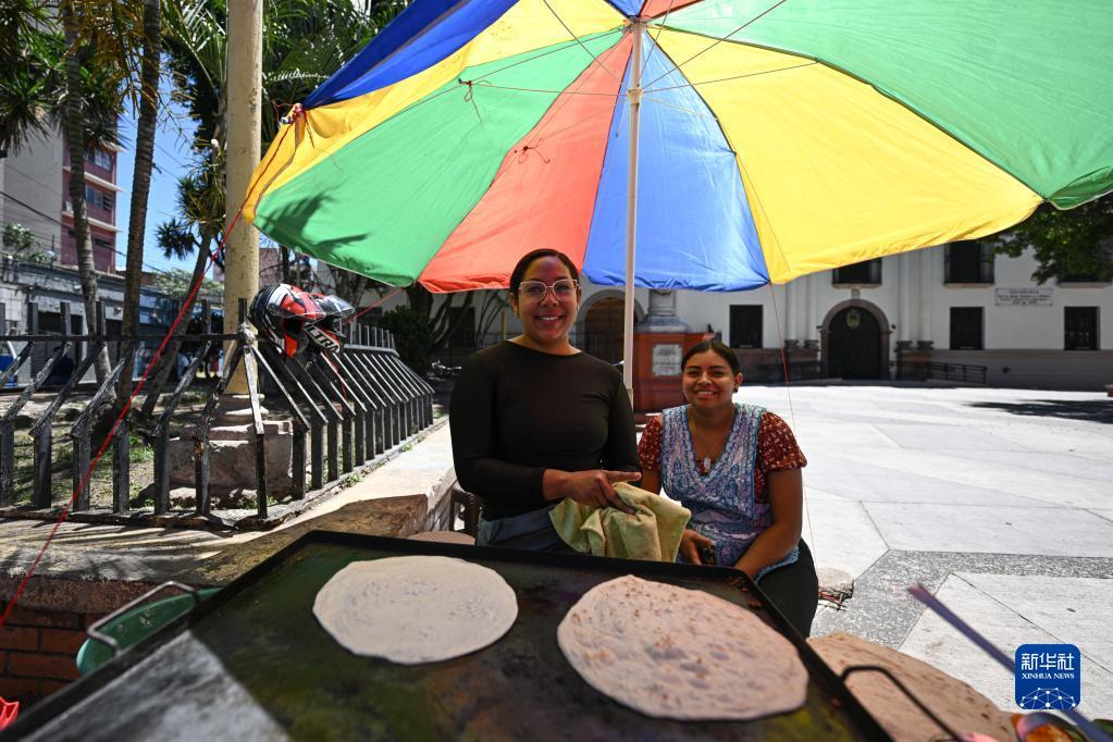 3月26日,在洪都拉斯首都特古西加尔巴,两名女子制作当地特色的“巴莱达饼”。