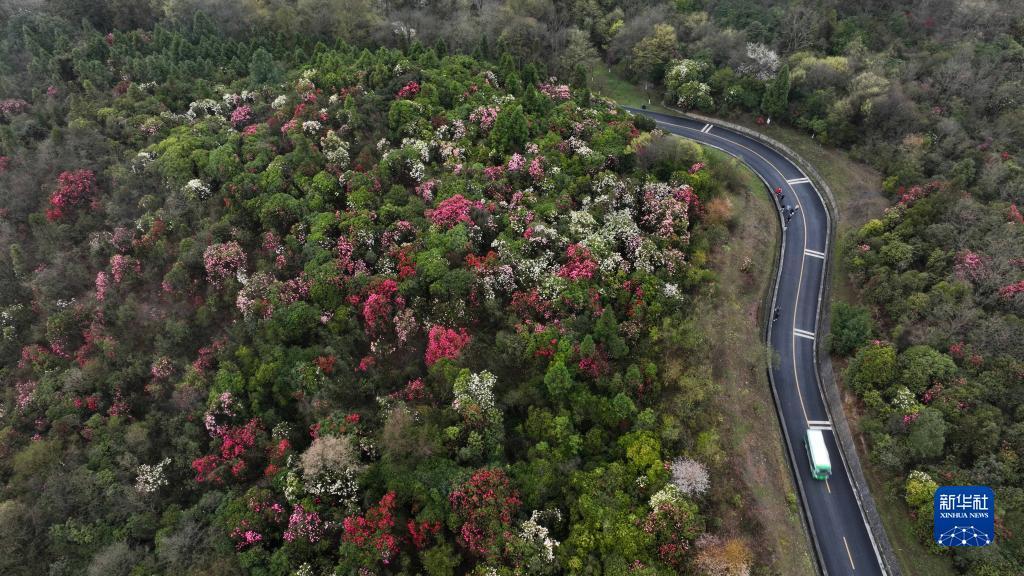 近日,随着气温逐渐升高,位于贵州省毕节市百里杜鹃管理区的天然野生杜鹃花次第盛开,逐渐进入盛花期。据了解,百里杜鹃林带绵延百里,故称“百里杜鹃”。
