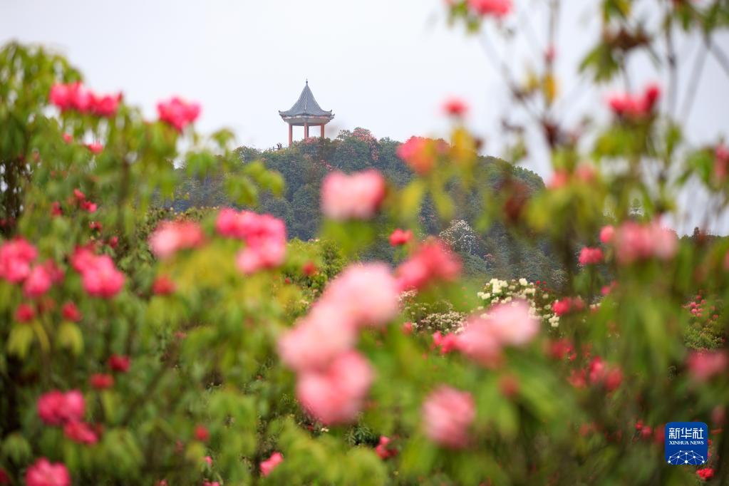 3月28日,百里杜鹃景区醉九牛景点附近杜鹃花盛开。