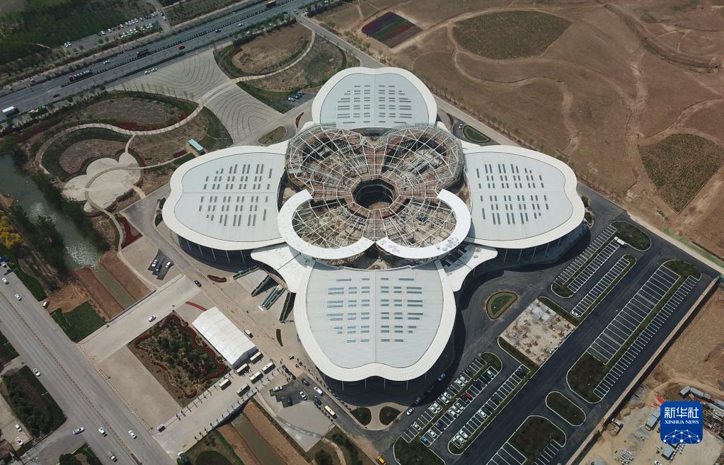 这是4月9日拍摄的投入使用的昆明国际花卉拍卖交易中心菏泽分中心(无人机照片)。
