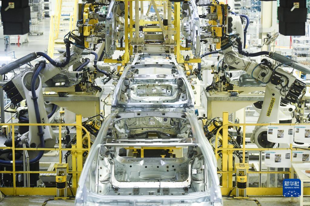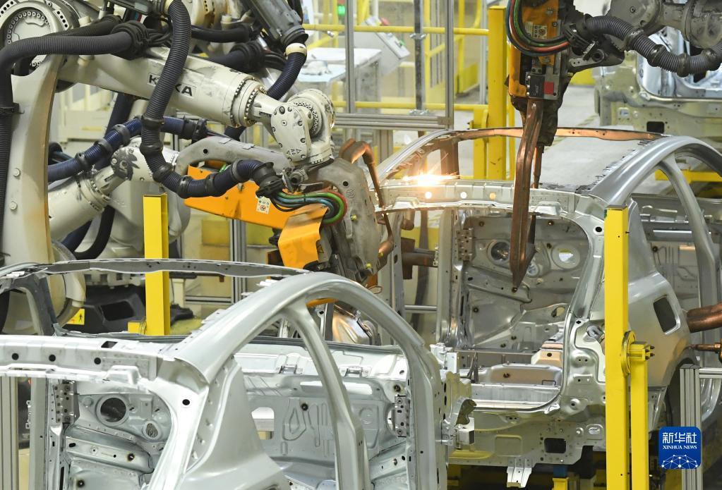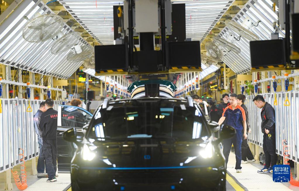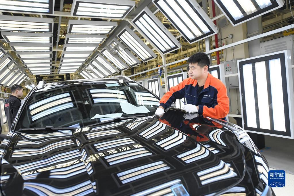 4月11日,在领克汽车宁波余姚工厂总装车间,全自动生产线将新能源车运送到下一个环节。