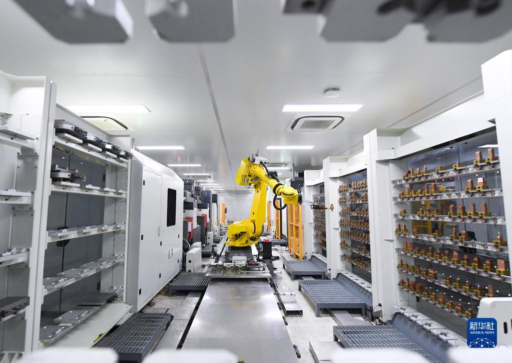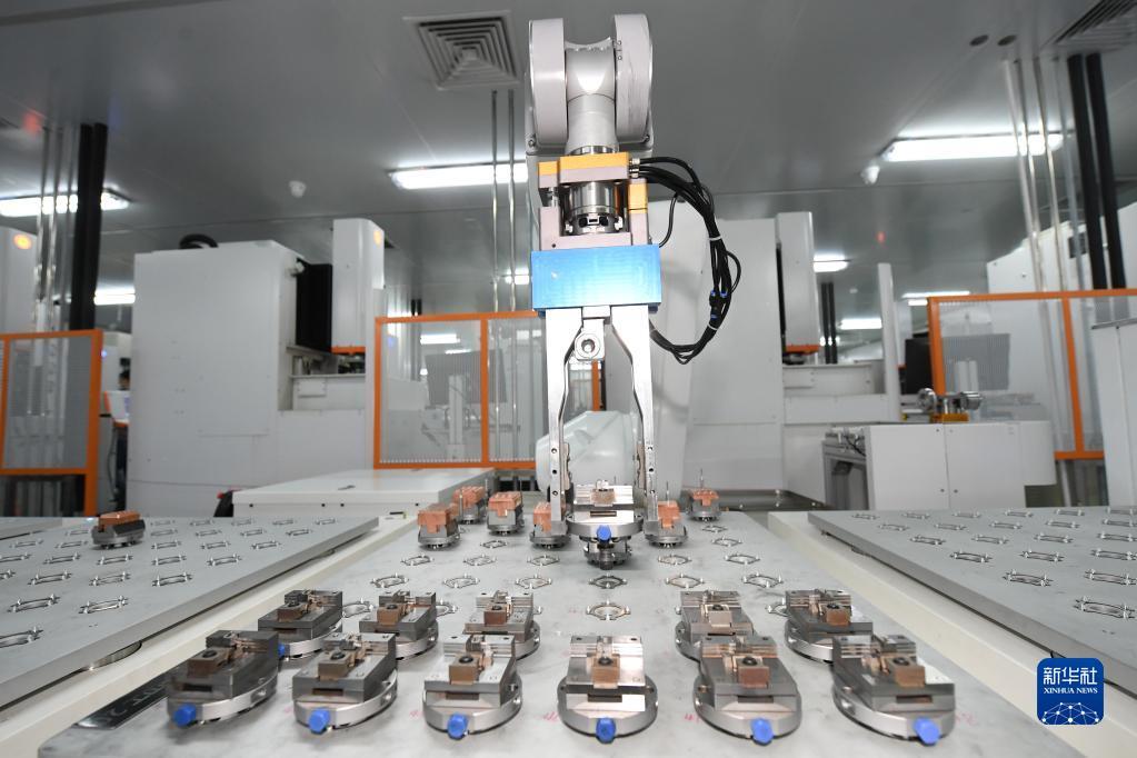 4月11日,在位于余姚的贝隆精密科技股份有限公司,智能机器人在抓取制作模具的工件。