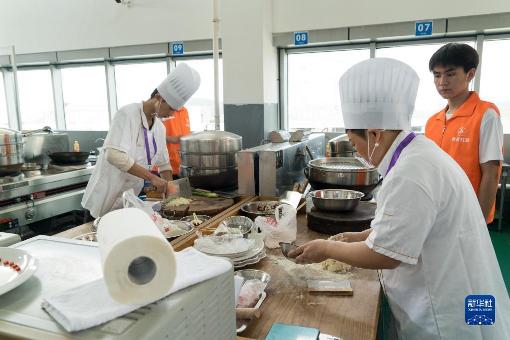 4月12日,在四川省绵阳市公共实训基地,参加中式面点项目的选手正在准备食材。