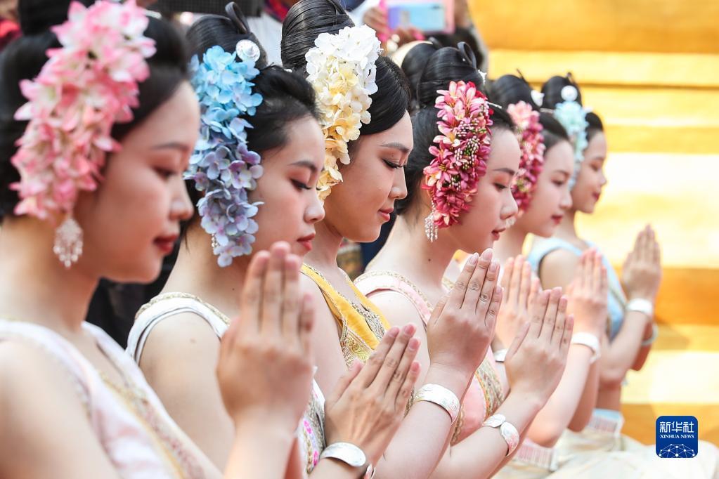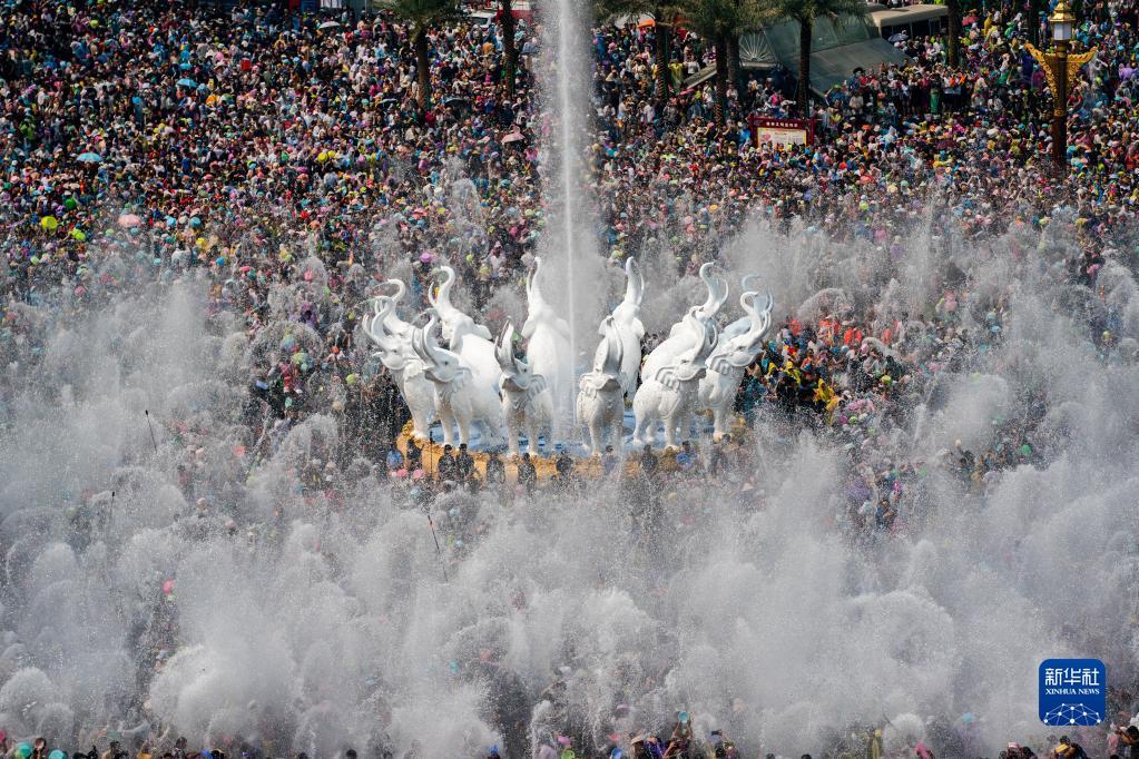 当日,云南省西双版纳傣族自治州举行傣历新年取水仪式及泼水狂欢,数万名各族群众和游客在景洪市用相互泼水的方式互送祝福、传递欢乐。