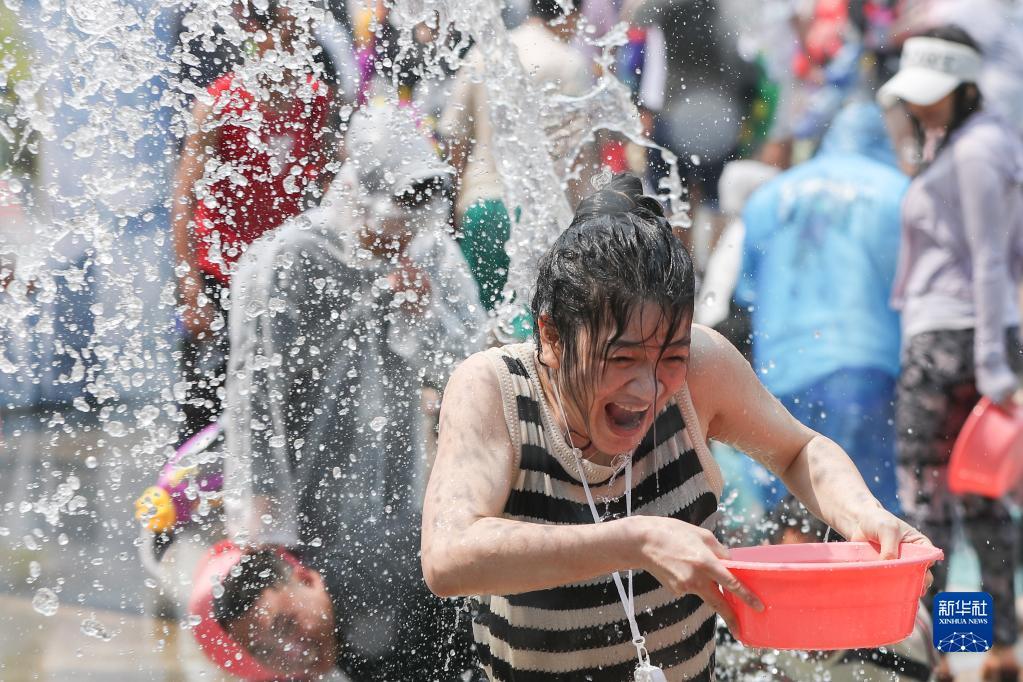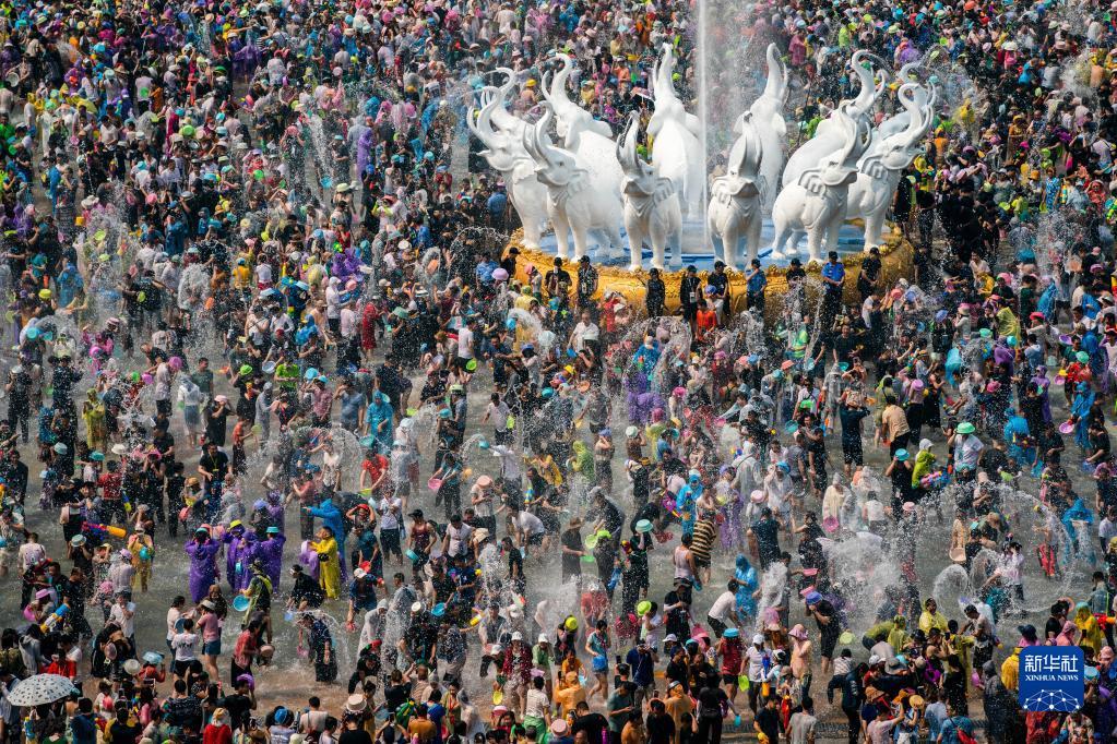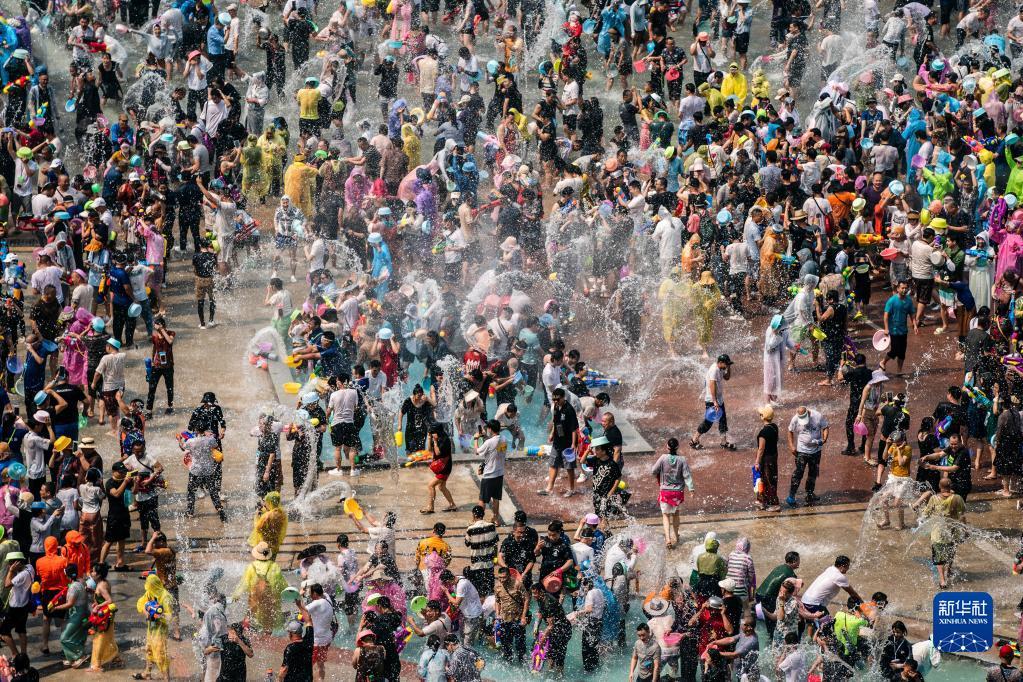 4月15日,人们在云南省西双版纳傣族自治州景洪市泼水广场泼水狂欢。
