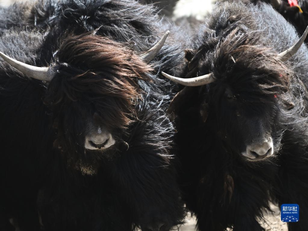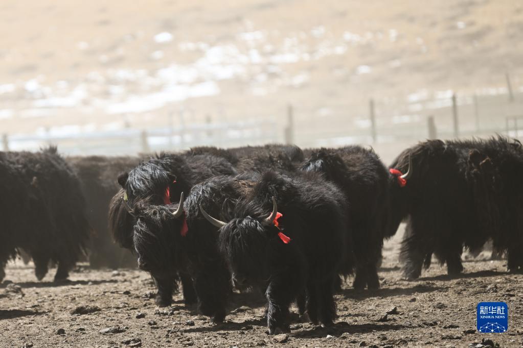 这是4月14日拍摄的刚察县环湖型牦牛良种繁育基地内的环湖型长毛牦牛。 新华社记者 张宏祥 摄