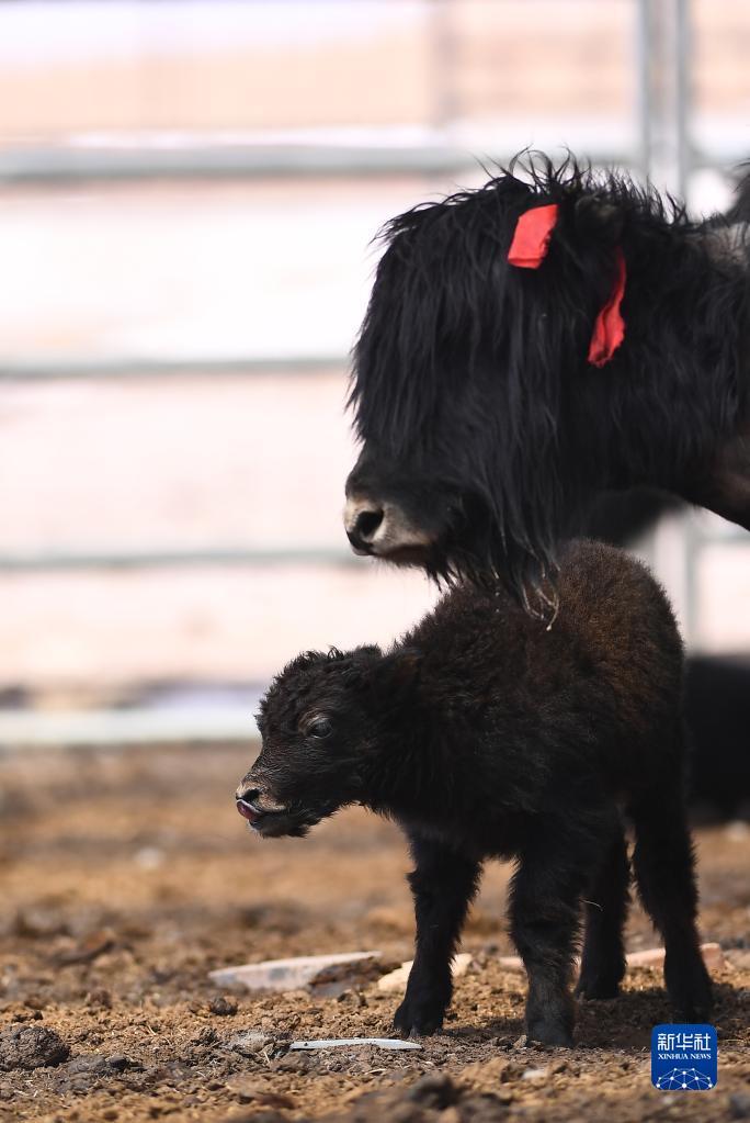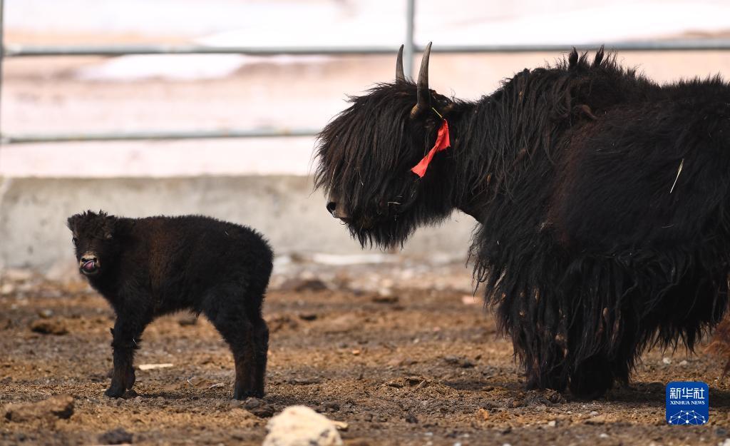 这是4月14日拍摄的刚察县环湖型牦牛良种繁育基地内的环湖型长毛牦牛。 新华社记者 张龙 摄