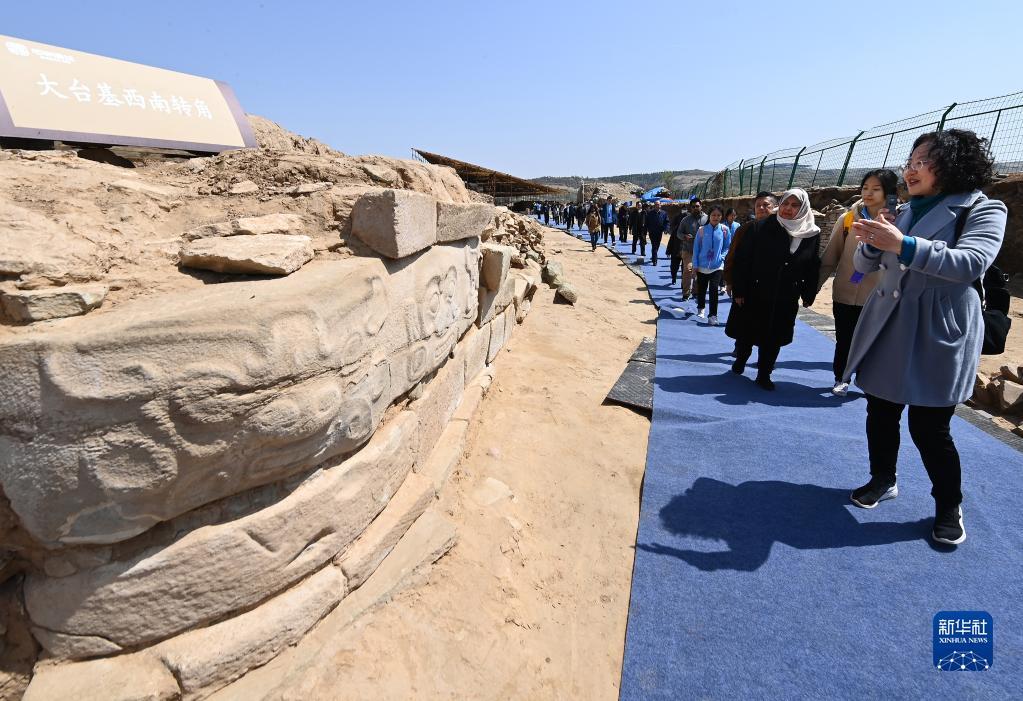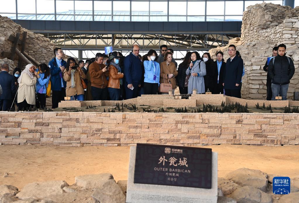 当日,参加亚洲文化遗产保护联盟大会的多国代表、东盟成员国来宾和相关国际组织代表来到陕西石峁遗址实地参观调研文化遗产保护情况。