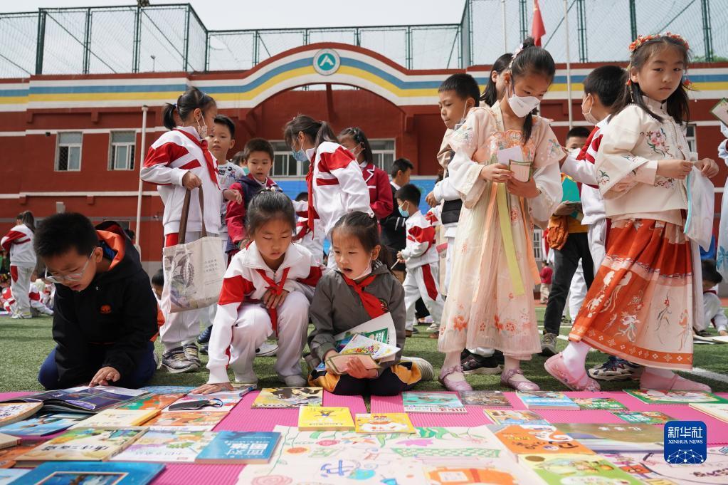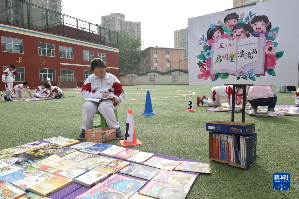 当日,位于北京市海淀区的人大附中实验小学举办校园读书节活动。本次读书节的主题为“阅读传承经典 创作点亮未来”,活动现场各班级设置“流动书角”,让学生交换图书,丰富阅读选择。与此同时,活动通过引导学生读绘本、童话故事及经典名著,将读书所得用朗诵、戏剧表演等形式展示,激发学生的阅读兴趣。