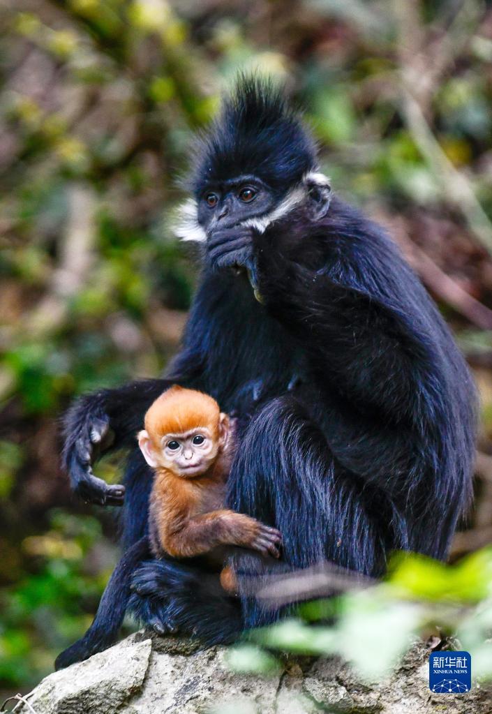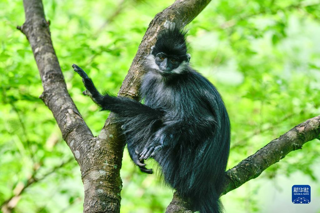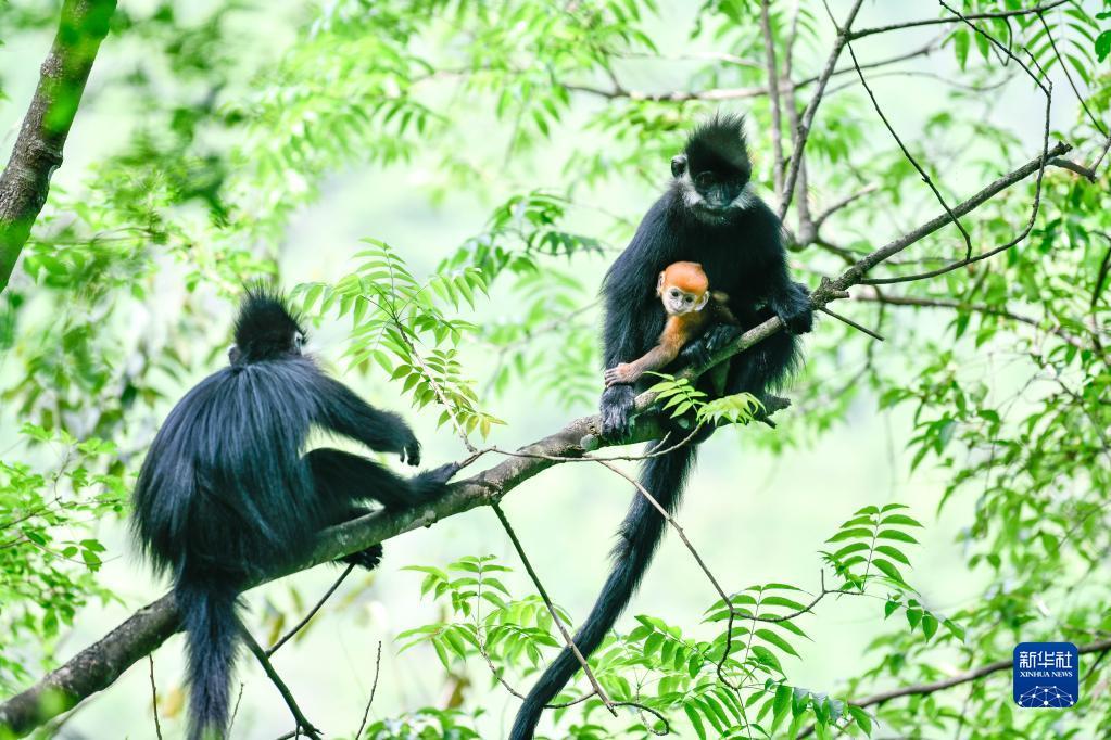 5月1日拍摄的贵州麻阳河国家级自然保护区的黑叶猴。