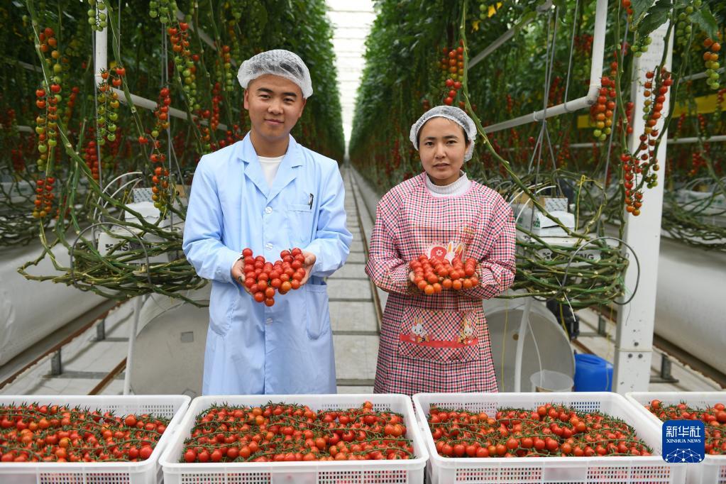 当日,在甘肃省武威市古浪县黄花滩移民区,古浪越海智能工业化栽培生态项目的职工忙着采收番茄、打包装箱、发送订单。据了解,这个智能温室工业化栽培生态项目应用了温室环境智能中控技术、智能水肥循环技术等,打造出技术先进、节能环保的现代化智能玻璃温室,出产的串收番茄口感好、销路旺,带动黄花滩移民区大量农户就业,受雇农民平均月收入超4000元。