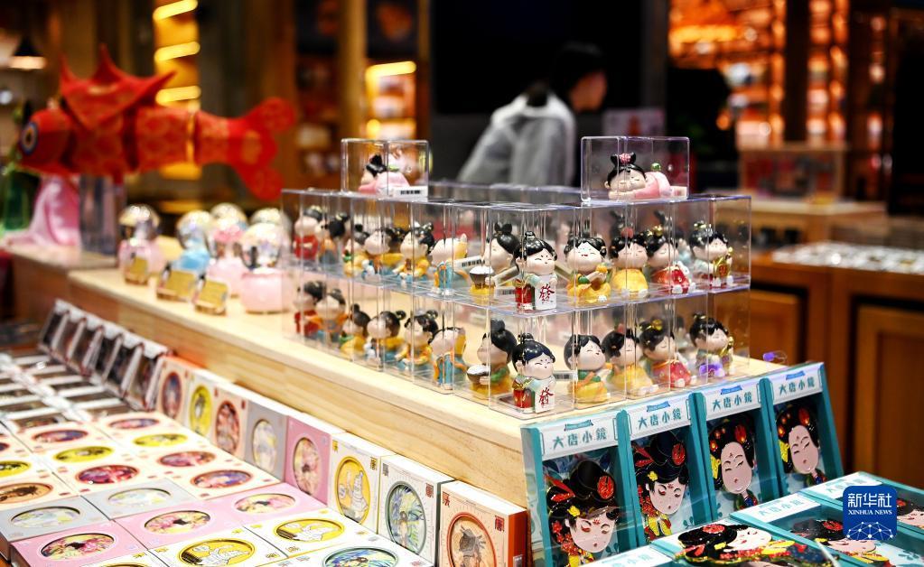 西安华清宫景区内的唐风文创产品(5月5日摄)。