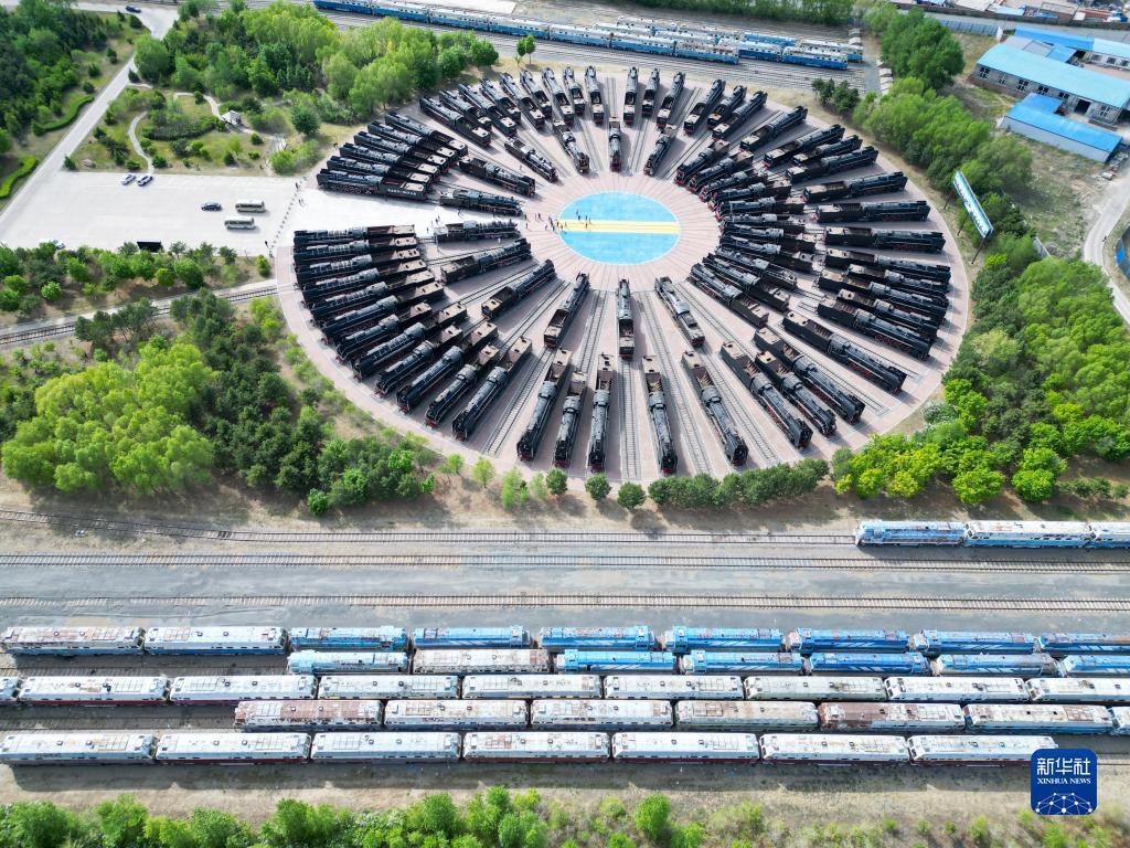 这是5月17日拍摄的大安北蒸汽机车陈列馆(无人机照片)。