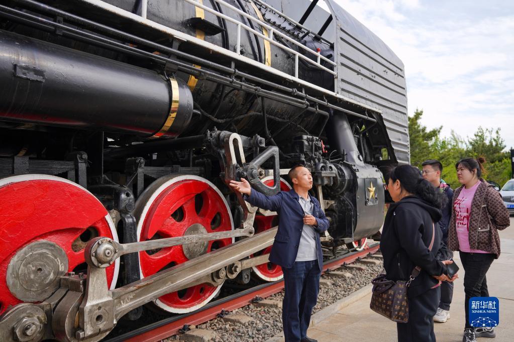 5月17日,中国铁路沈阳局集团有限公司白城机务段工作人员向游客进行讲解。