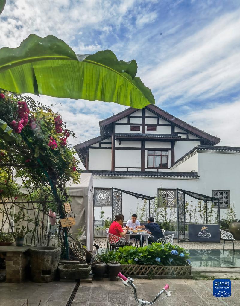5月16日,在天台县赤城街道塔后村的民宿里,游客在吃早餐。