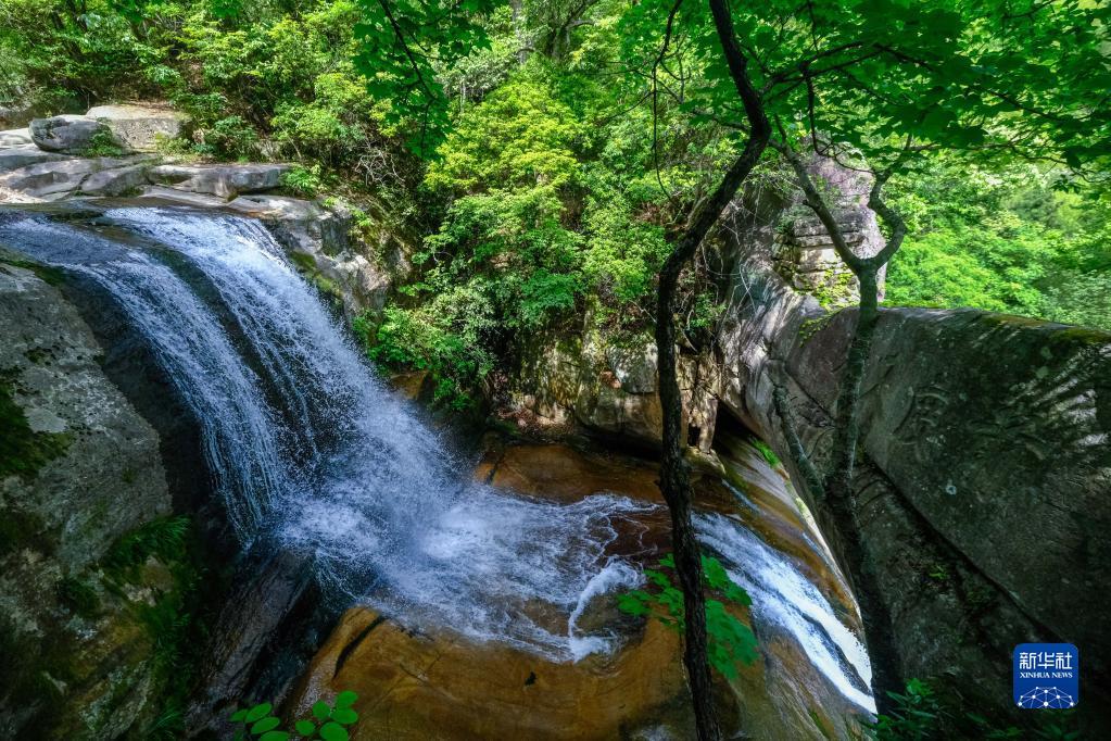 天台山琼台仙谷景区一处瀑布(5月16日摄)。