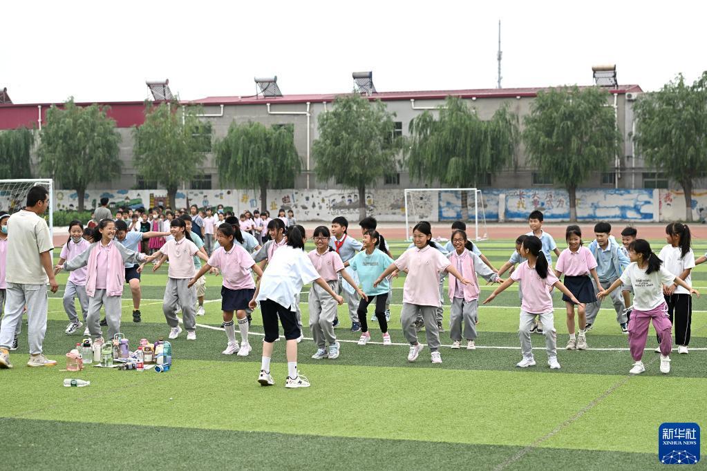 5月31日,中关村第三小学雄安校区的学生在操场上体育课。
