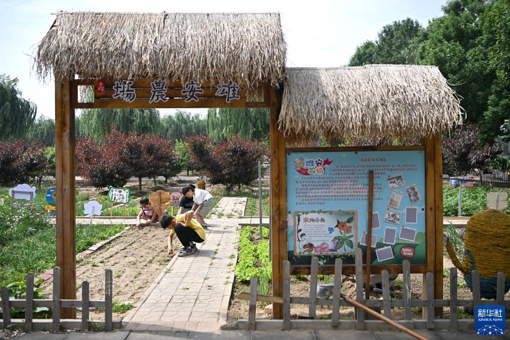 5月31日,中关村第三小学雄安校区的学生在学校设立的“雄安农场”里手工除草。“雄安农场”里每个班级都有自己的一块土地,学校通过农场劳动课,让同学们从科学走向生活,从知识走向能力。