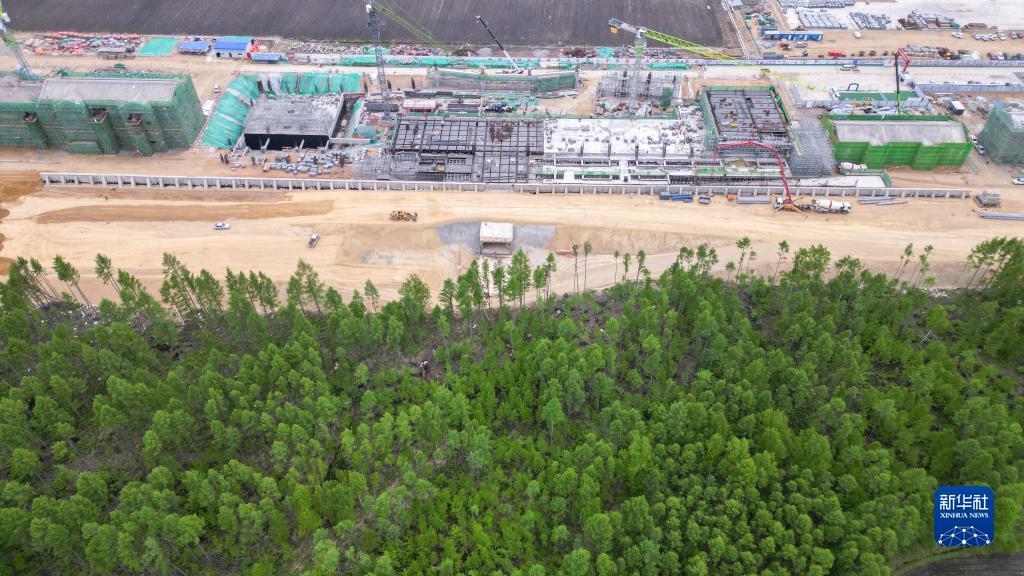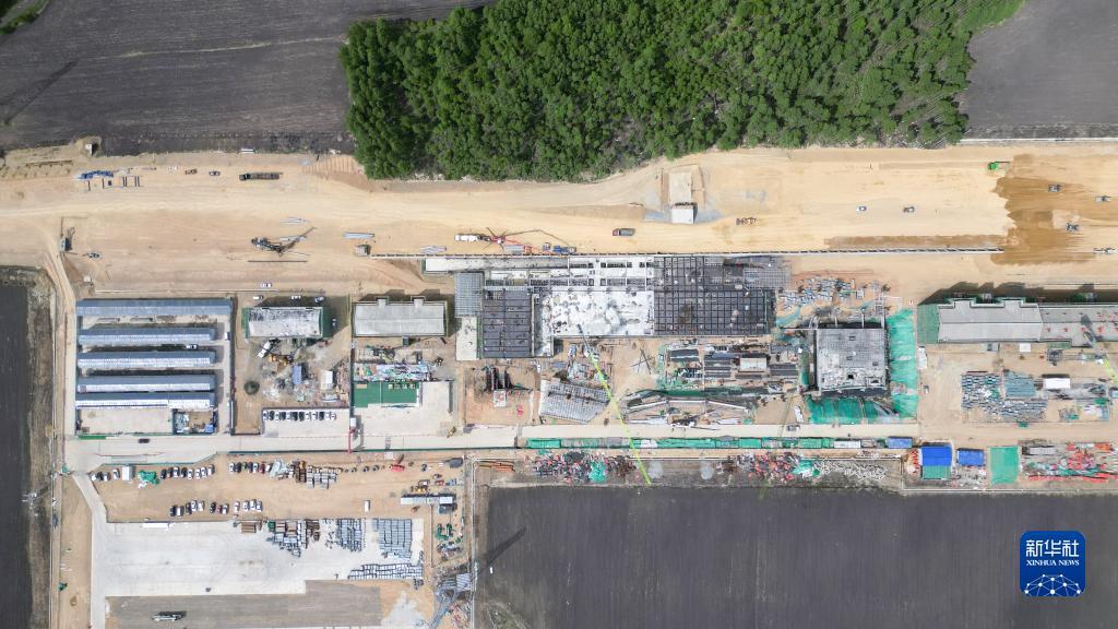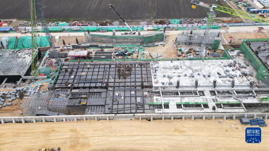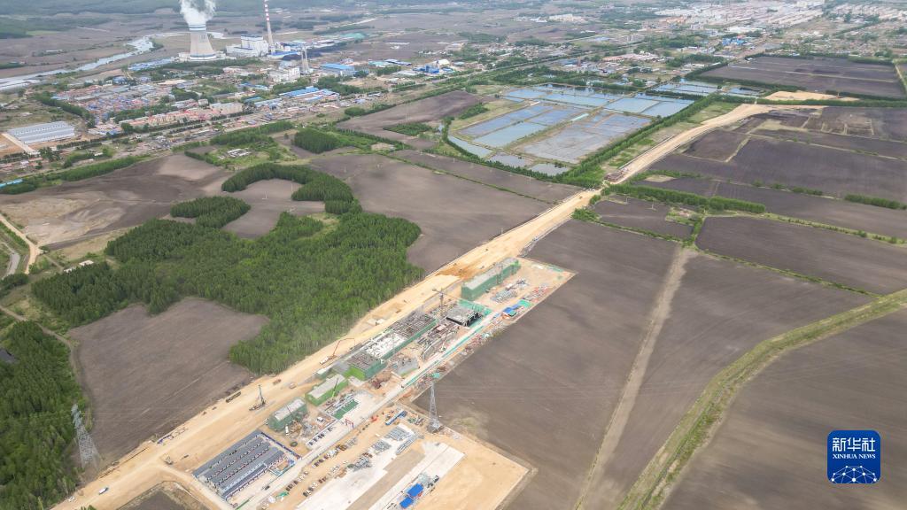 这是6月2日拍摄的伊春西站主体结构施工现场(无人机照片)。