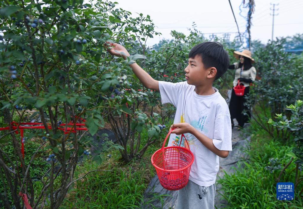 初夏时节,浙江省湖州市长兴县虹星桥镇一万多亩精品果园内的蓝莓、小番茄、西瓜、黄桃等陆续进入成熟采摘期。当地依托现代农业资源,开启农园新景休闲采摘旅游文化节,发布蔬果采摘、渔文化等研学线路,吸引游客前来,助力特色乡村旅游发展。