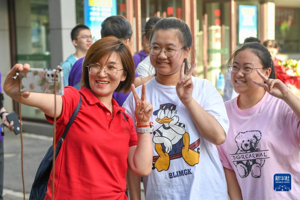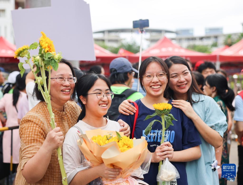 6月8日,在贵阳市乌当中学考点,考生结束考试后在考场外合影留念。