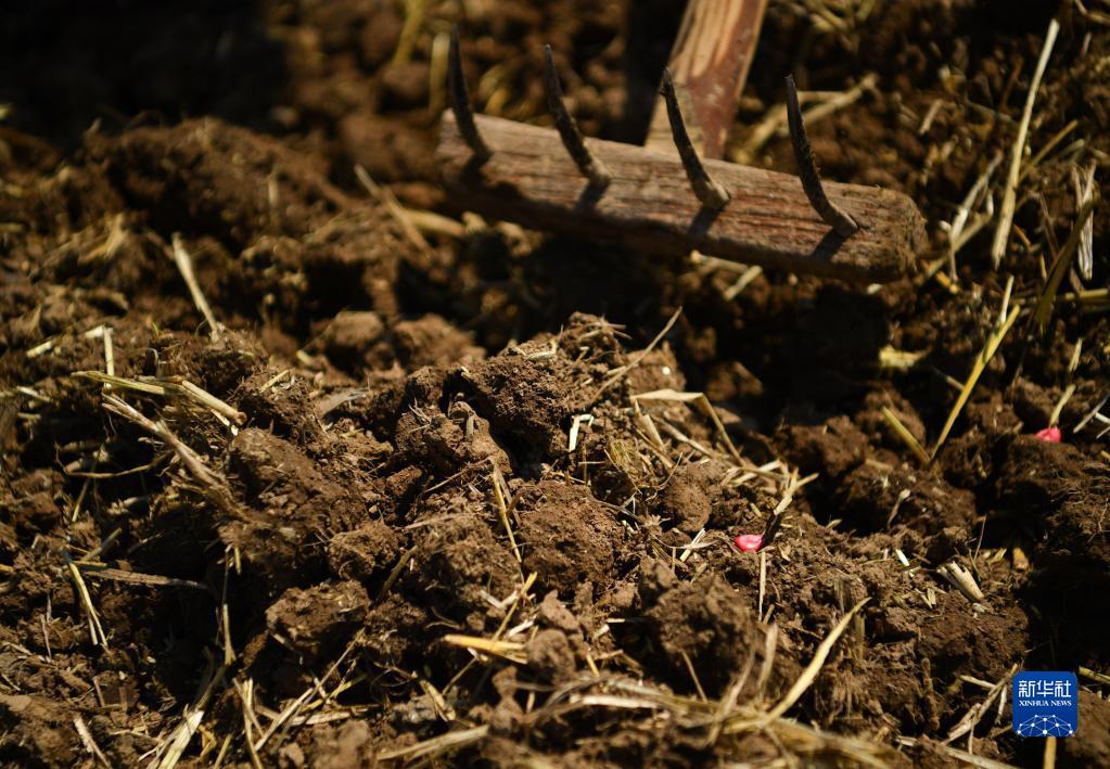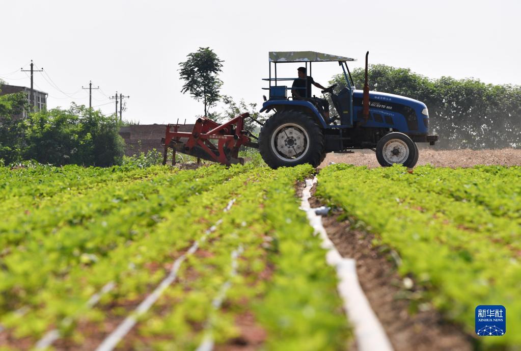 6月13日,在陕西省西安市鄠邑区五竹街道,农户在已经播种玉米的田地上松土。