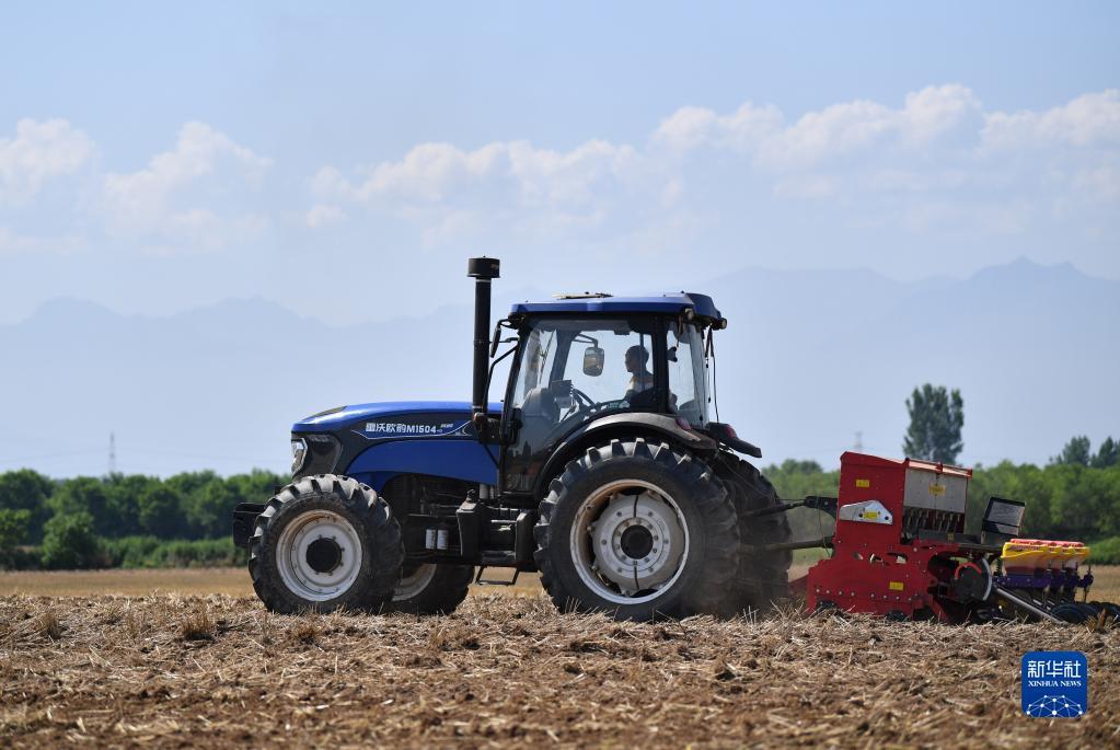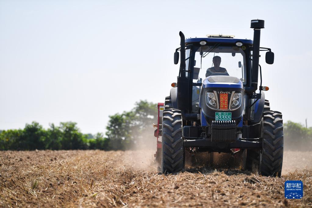 近日,在位于关中平原的陕西省西安市鄠邑区,农户在麦收后抢抓农时开展夏种夏管,田间地头一派忙碌景象。