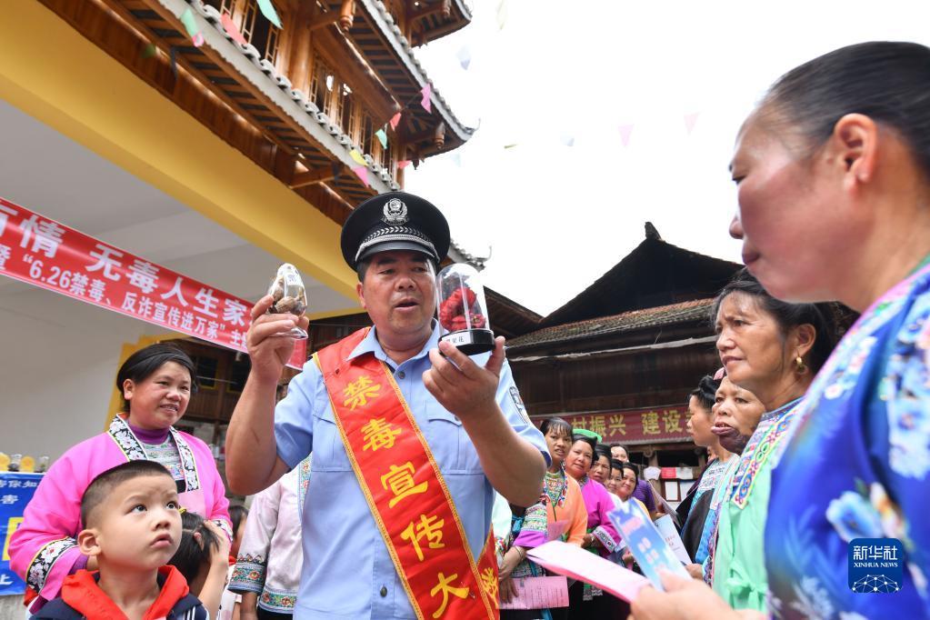 在第36个国际禁毒日来临之际,广西柳州市融水苗族自治县杆洞乡乌英苗寨开展禁毒知识进苗寨宣传教育活动,通过讲解禁毒知识、鉴别毒品样品、发放宣传资料等方式,帮助村民提高识别毒品能力,增强禁毒意识。