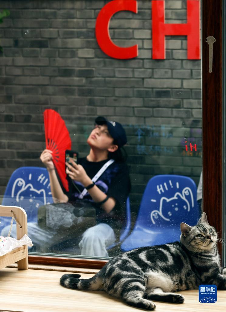 顾客进入“鼓捣猫呢”的大门(6月19日摄)。