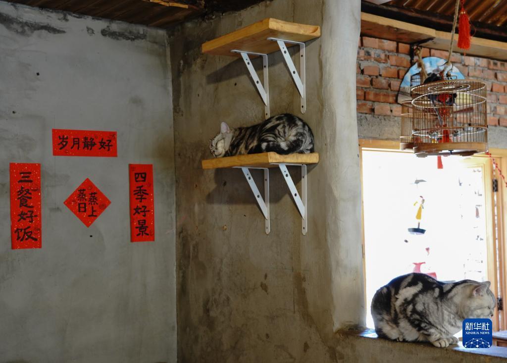 店内有37只相貌不同、性格各异的猫咪,还养了几只狗和兔子,其中唯一戴着项圈的美短虎斑猫名叫“招财”,是一只有故事的猫。2017年,“招财”在店外被陌生人抱走,几经周折找回后,店主“于小猫”给它戴上了写有联系方式的项圈。“招财”失踪的那段时间,她试过用各种方法寻找,报警、查监控、张贴寻猫启事、网上发帖……当时“鼓捣猫呢”还是个初创不久的小店,光顾的人并不多。出乎意料的是,寻猫事件反而提高了店铺的知名度,也算是因祸得福。