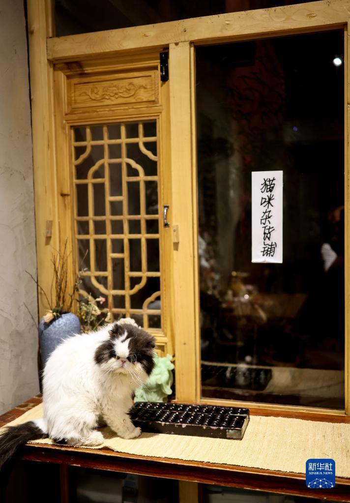 夜已深人亦静,“账房先生”猫咪“雅鹿”还在“盘算”杂货铺一天的收益(6月19日摄)。