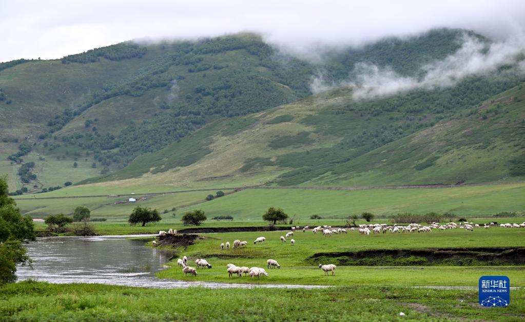 夏日时节,位于内蒙古自治区兴安盟科尔沁右翼前旗的乌兰毛都草原绿草如茵,景色宜人。