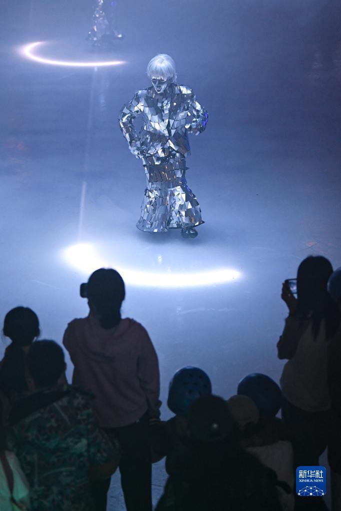 7月8日,游客在新密市银基国际旅游度假区观看节目表演。