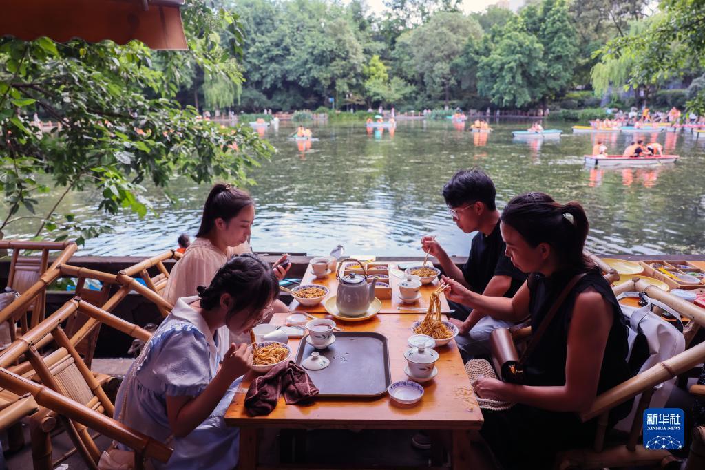 鹤鸣茶社不但能喝茶还供应餐食(8月7日摄)。