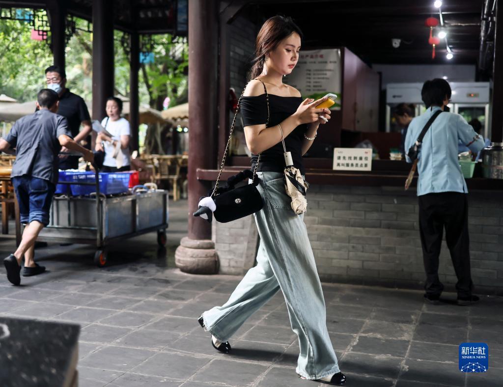 鹤鸣茶社一角(8月7日摄)。