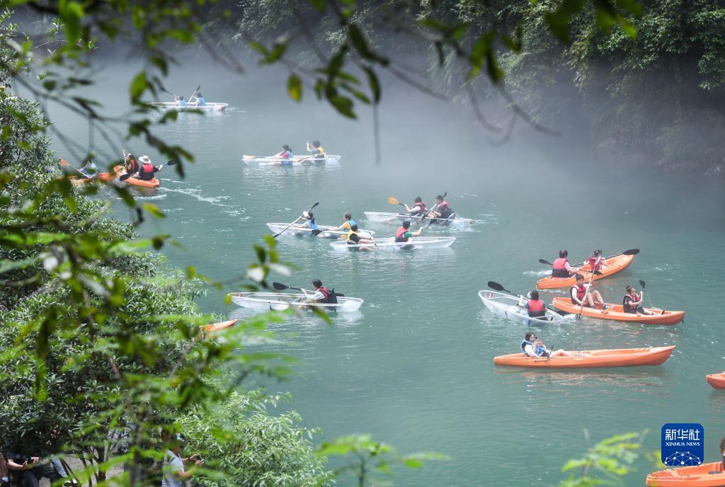 8月16日,游客在屏山峡谷划船。