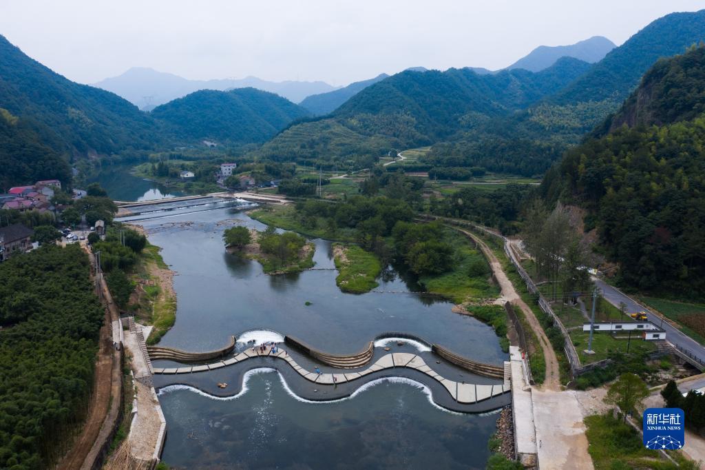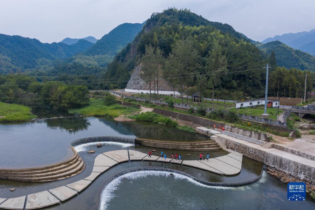 8月25日,空中俯瞰湖源乡龙鳞坝壶源溪流域(无人机照片)。