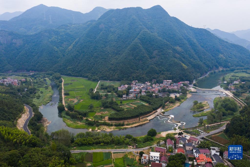 8月25日,空中俯瞰湖源乡石龙村壶源溪流域(无人机照片)。