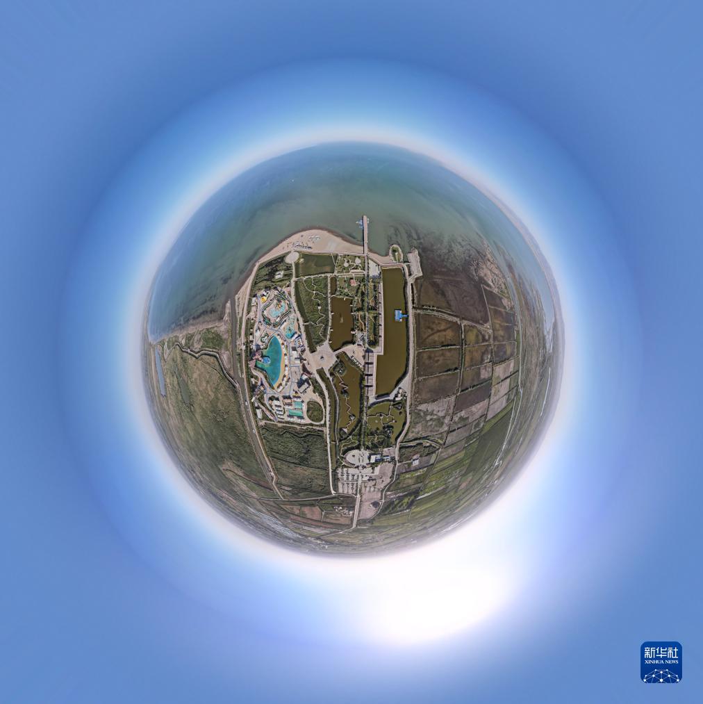 8月31日拍摄的新疆博斯腾湖大河口景区(无人机全景照片)。