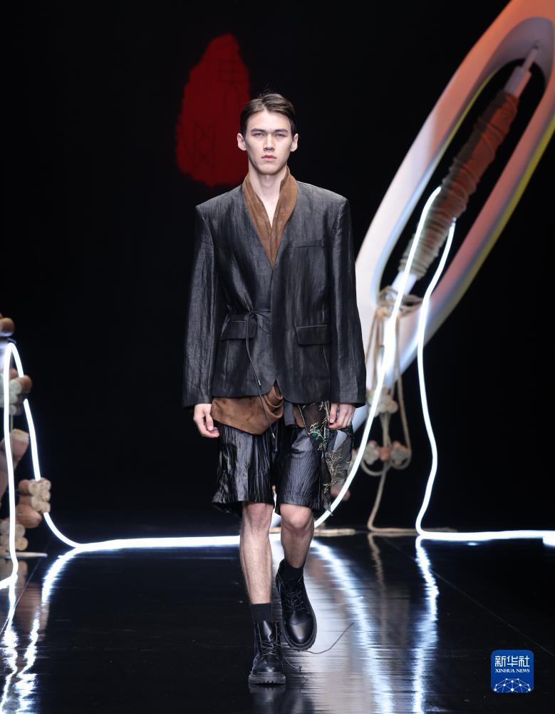 当日,主题为“文脉承续·香云纱·锦·绣·中华”的黄刚时装发布会在北京举行的中国国际时装周(2024春夏系列)上举行。