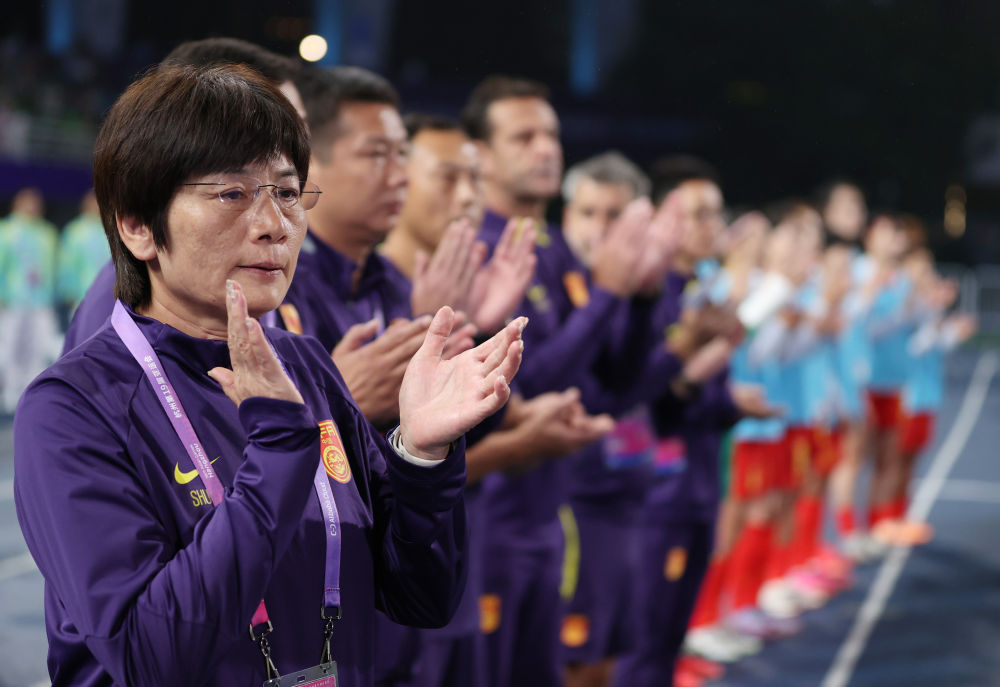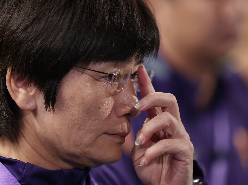 ↑中国队主教练水庆霞在比赛前。新华社记者 贾浩成 摄