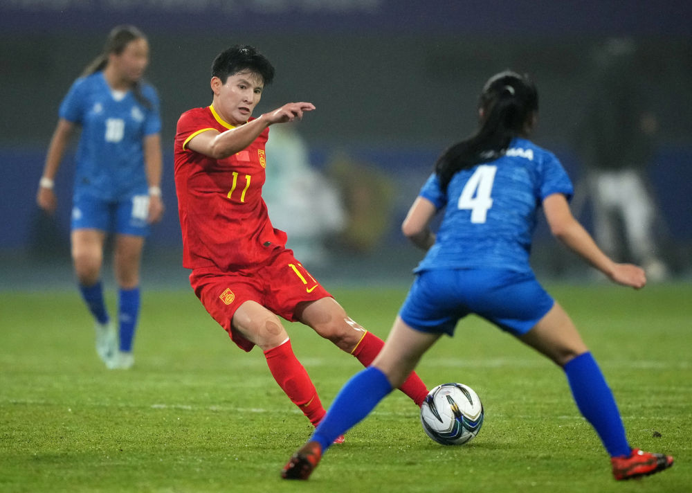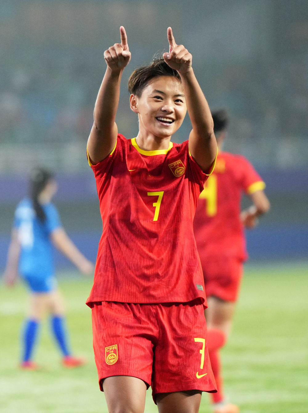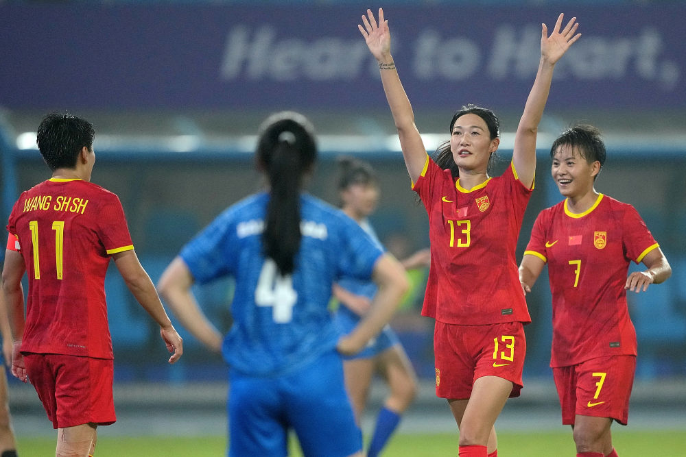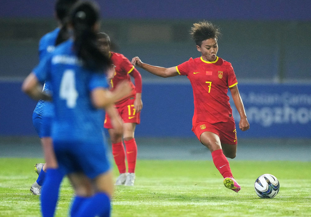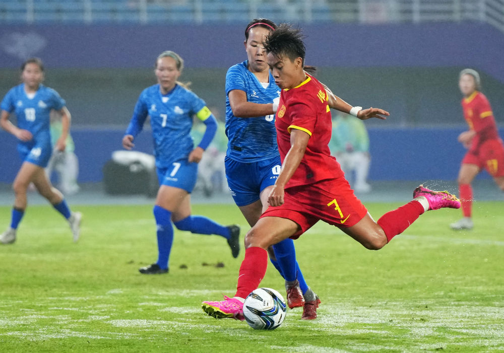 9月22日,在杭州市临平体育中心体育场举行的杭州亚运会女子足球小组赛A组比赛中,中国队16比0战胜蒙古国队,取得首胜。