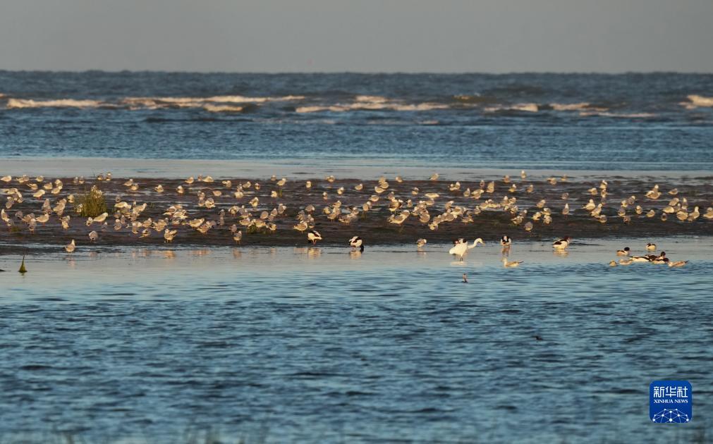 近日,大批迁徙候鸟飞抵河北省秦皇岛市北戴河区沿海湿地觅食、停留,出现万鸟临海场景。