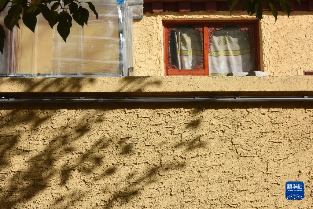 10月10日在四川甘孜藏族自治州理塘县拍摄的藏式建筑一角。
