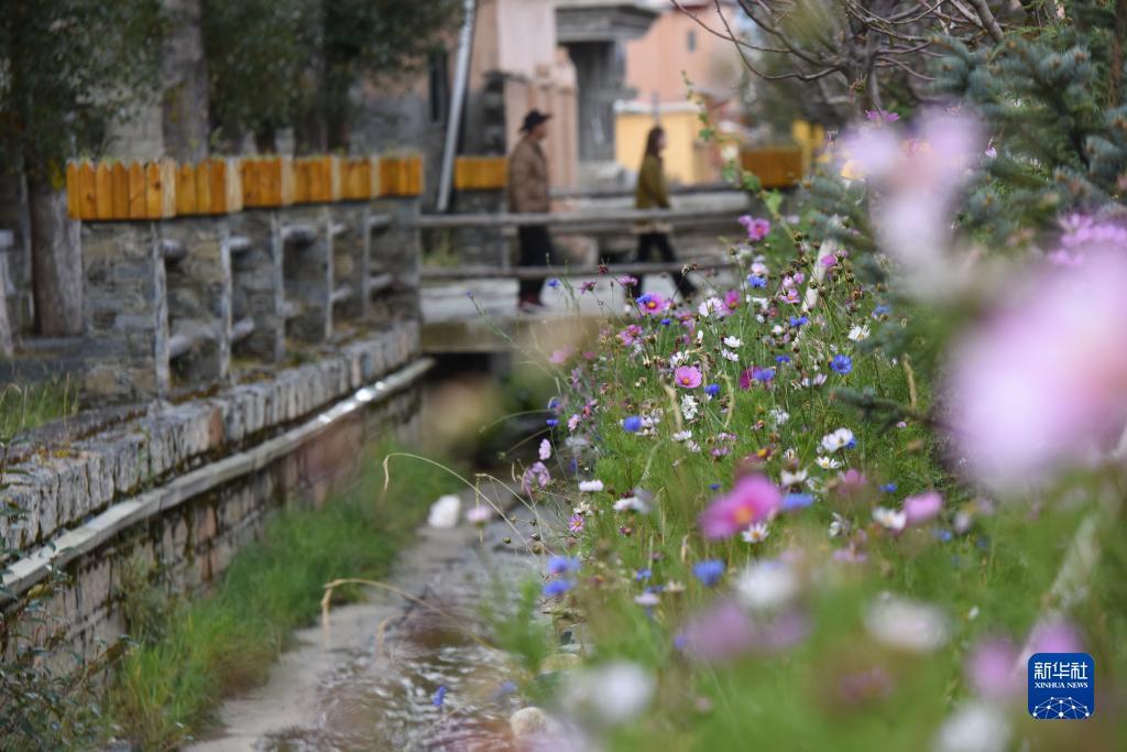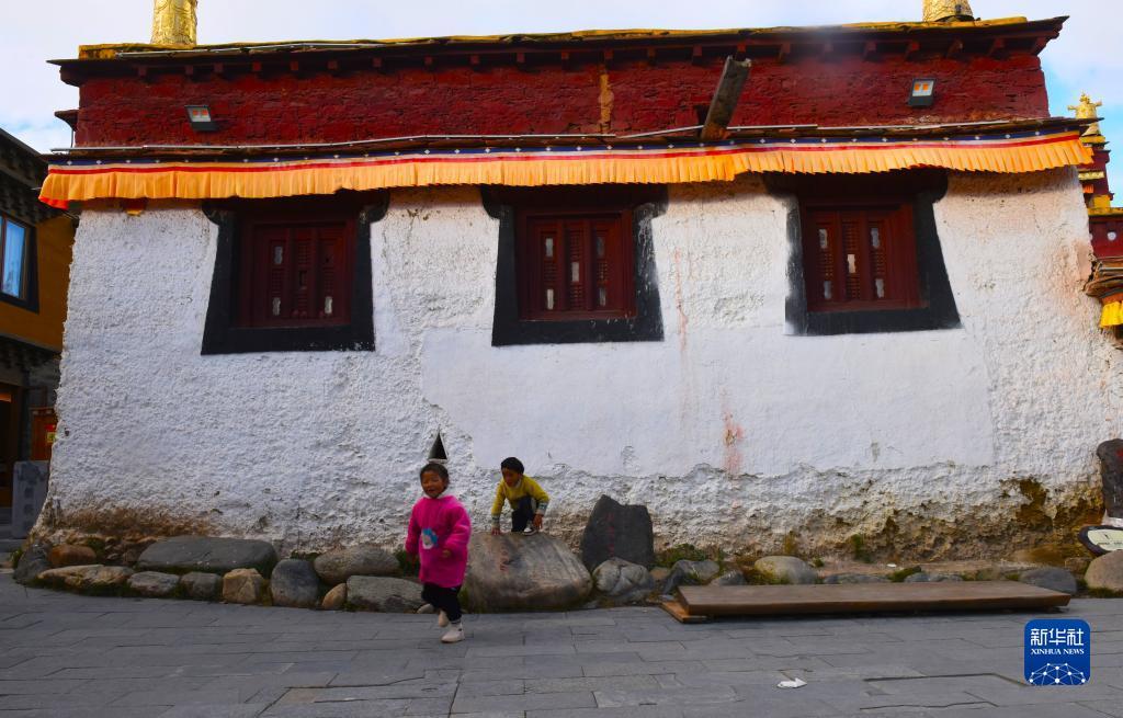 10月10日,在四川甘孜藏族自治州理塘县,儿童在街头玩耍。