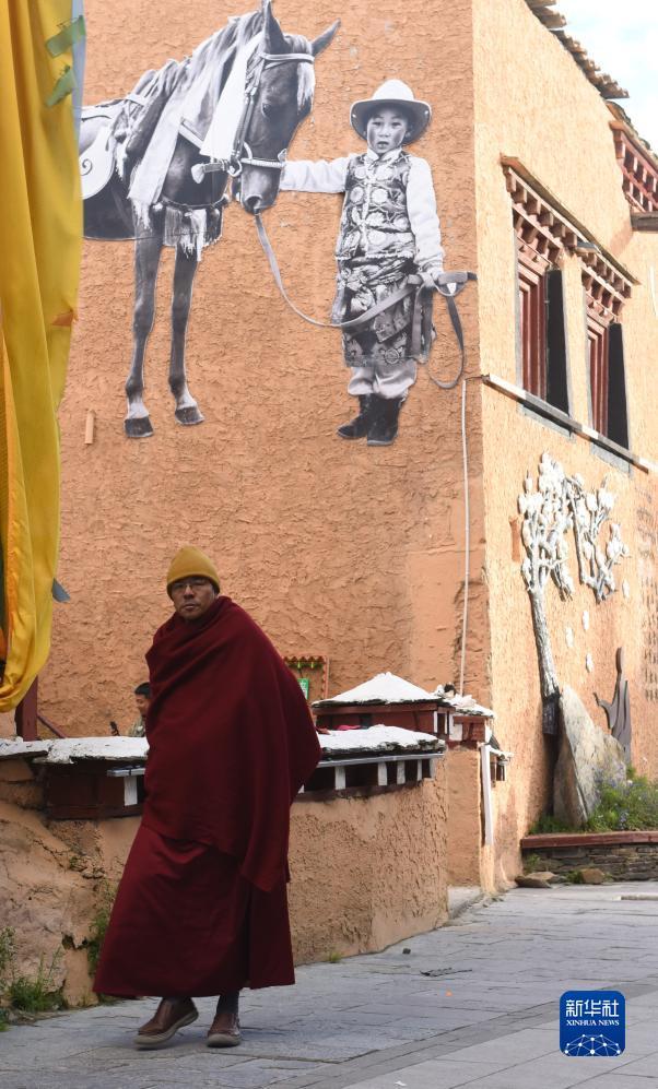 10月10日在四川甘孜藏族自治州理塘县拍摄的街景。