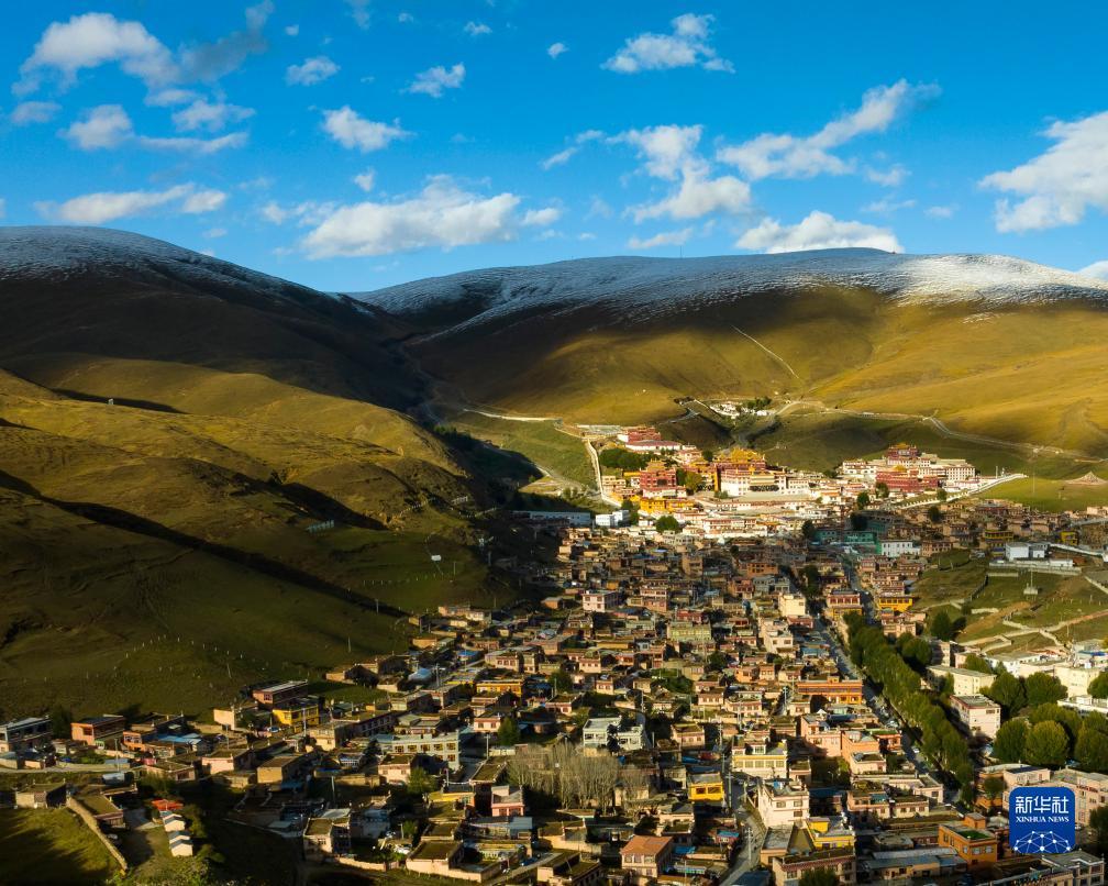 这是10月10日拍摄的四川甘孜藏族自治州理塘县勒通古镇千户藏寨(无人机照片)。