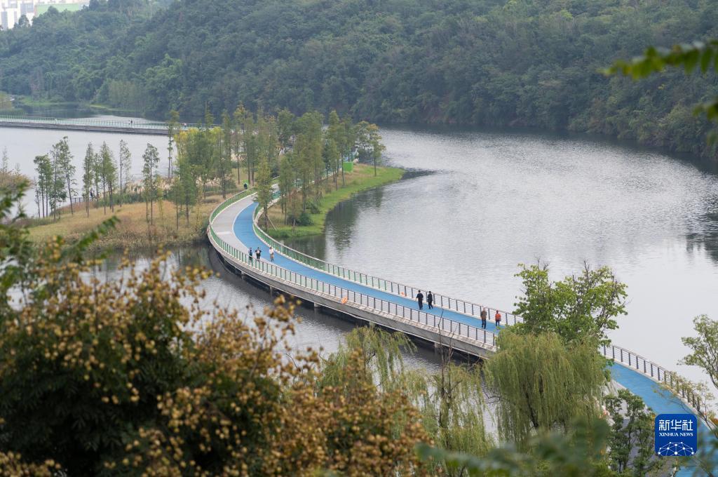 这是四川天府新区兴隆湖上的健身步道(10月16日摄)。