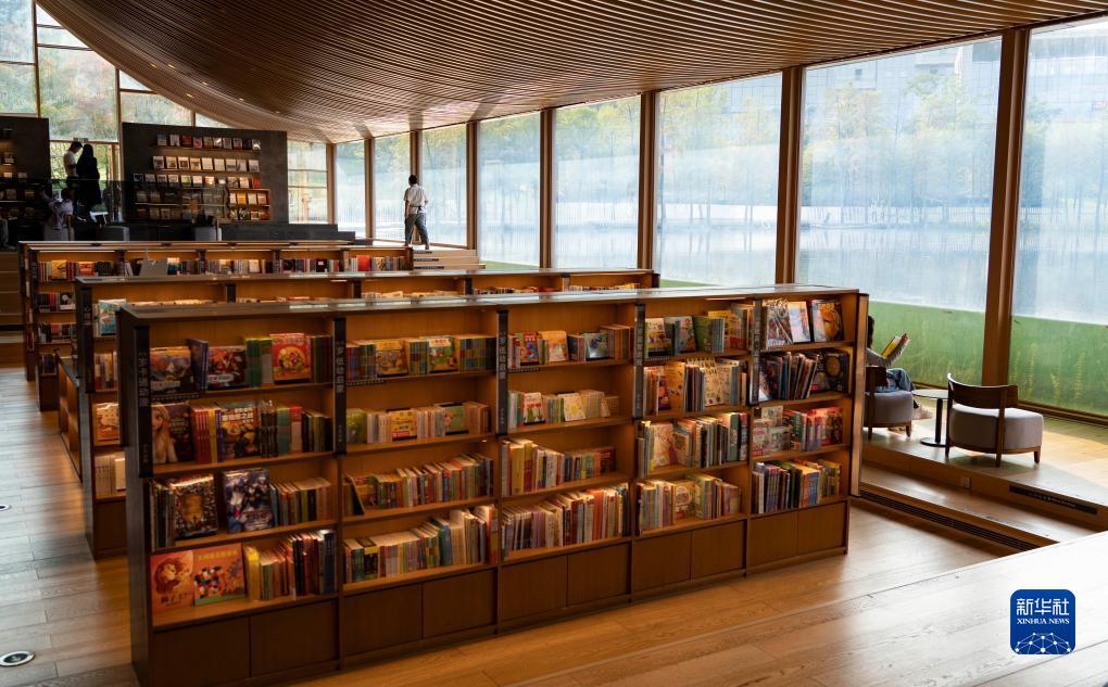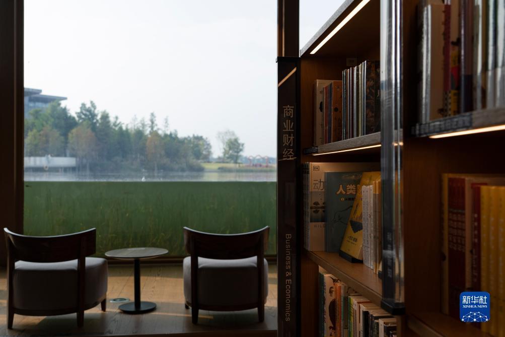 10月16日,市民在位于四川天府新区兴隆湖畔的中信书店读书。