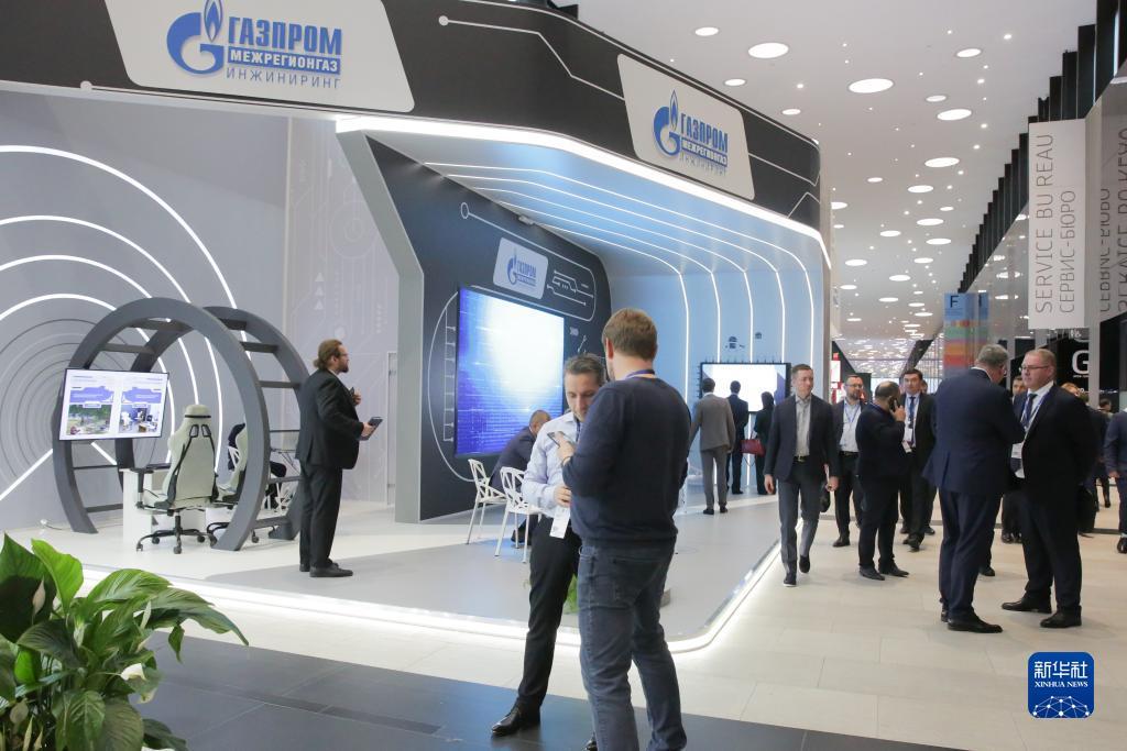 这是11月1日在俄罗斯圣彼得堡拍摄的第十二届圣彼得堡国际天然气论坛展会会场。